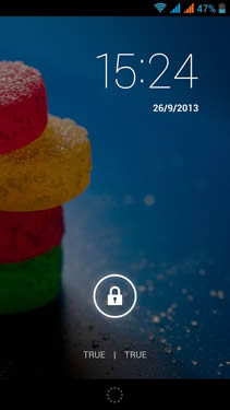 ปลดล็อคด้วยการใช้นิ้วปัดเลื่อนที่ว่างบนหน้าจอไปทางใดทางหนึ่งเพื่อเข้าสู่หน้าจอหลัก