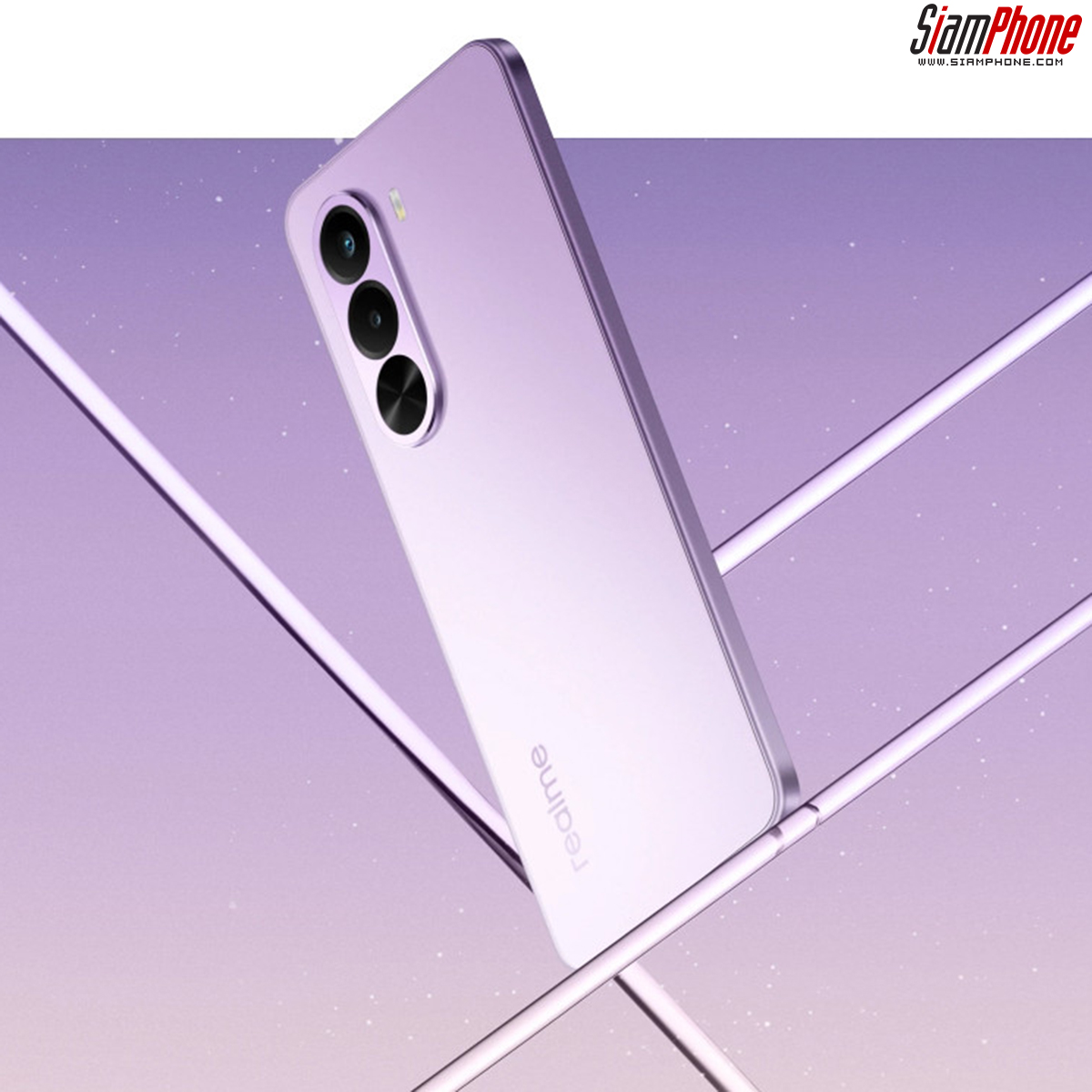 ที่มุมซ้ายบนของด้านหลัง เป็นกล้องหลัง 4 เลนส์ ความละเอียด 12MP + 64MP + 8MP + 2MP เรียงตามลำดับลงมา ส่วนด้านข้างๆ เป็นไฟแฟลช และที่มุมซ้ายล่างเป็นโลโก้ realme