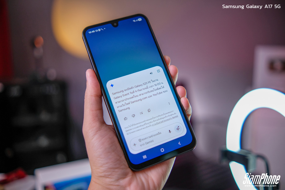 Samsung เปิดตัวสมาร์ตโฟนรุ่นใหม่ล่าสุด Galaxy A17 5G ชูธงเป็น "สมาร์ตโฟนสำหรับคนทำมาหากิน" ที่มาในราคาเข้าถึงได้ แต่ให้สเปคและฟีเจอร์ที่ตอบโจทย์การใช้งานในยุคปัจจุบันได้อย่างครบครัน ไม่ว่าจะเป็นการเชื่อมต่อ 5G ที่รวดเร็ว, RAM 8GB ที่ให้ความลื่นไหล, กล้องคุณภาพพร้อมระบบกันสั่น OIS และที่สำคัญคือการนำเทคโนโลยี AI เข้ามาเสริมทัพ เพื่อให้การใช้งานไม่จำกัดแม้จะมีงบที่จำกัดก็ตาม