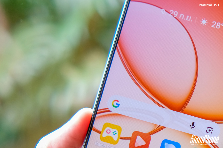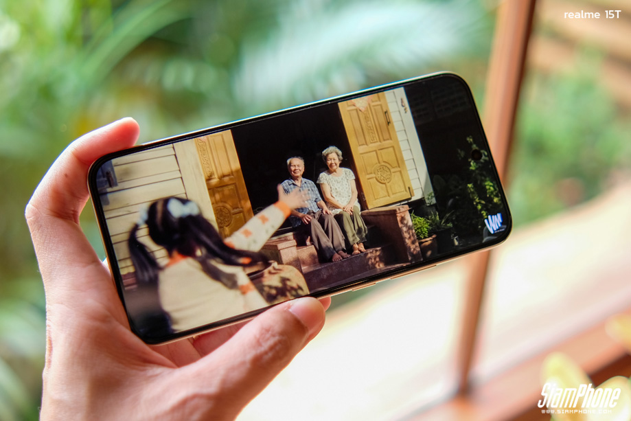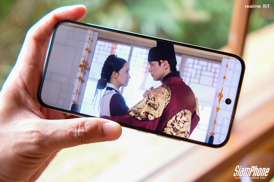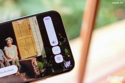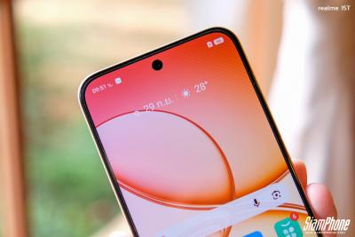 จอแสดงผลขนาด 6.7 นิ้ว AMOLED 4R Comfort+ ของ realme 15T โดดเด่นด้วยความสว่างสูงสุดถึง 4,000 นิต ทำให้ใช้งานกลางแดดจ้าได้อย่างชัดเจน พร้อมรองรับความลึกสี 10 บิต แสดงผลได้กว่า 1.07 พันล้านสี และค่ารีเฟรชเรต 120Hz ให้ภาพสมจริง ลื่นไหลทุกการสัมผัส ขอบจอบางเฉียบและอัตราส่วนหน้าจอต่อตัวเครื่องสูงถึง 93% ทำให้ได้ประสบการณ์เต็มตา นอกจากนี้ยังมีระบบลดแสง PWM 2160Hz ที่ช่วยถนอมสายตาเมื่อใช้งานในที่แสงน้อย