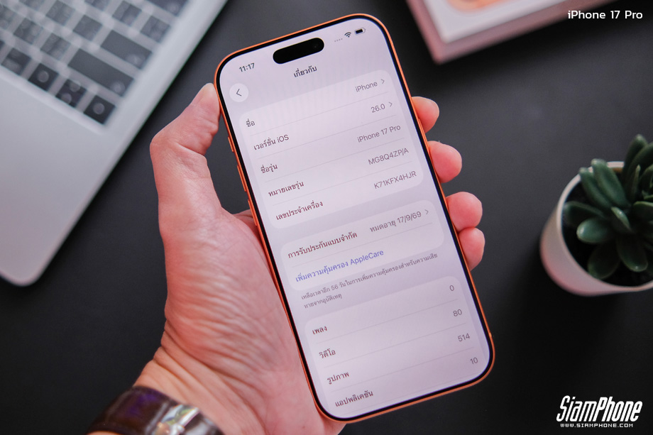 รุ่นใหม่ยังไงก็ต้องแรงขึ้นกว่าเดิม โดย iPhone 17 Pro จะได้ชิปเซ็ต A19 Pro ซึ่งเป็นขุมพลัง CPU แบบ 6-Core และ GPU แบบ 6-Core พร้อม Neural Engine แบบ 16-Core ถือว่าใช้งานแรงๆ และเล่นเกมกราฟฟิกสูงๆ ได้สบาย รวมไปถึงรองรับการใช้งาน Ray-Tracing กับเกมที่รองรับตามเดิม ส่วนการจัดการพลังงานก็ทำได้ดีขึ้นเช่นกัน โดยดูวิดีโอติดต่อกันได้นานสุดเป็น 31 ชั่วโมง พร้อมรองรับการชาร์จเร็วผ่านสาย 30W และ MagSafe สูงสุด 25W