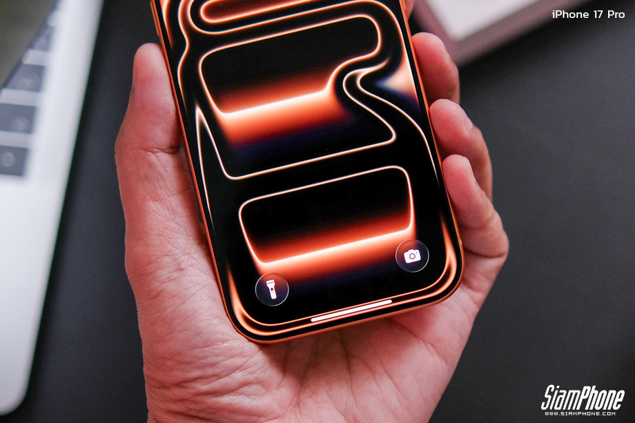ล่างหน้าจอแสดงผลของ iPhone 17 Pro ไม่มีปุ่มใช้งานใดๆ