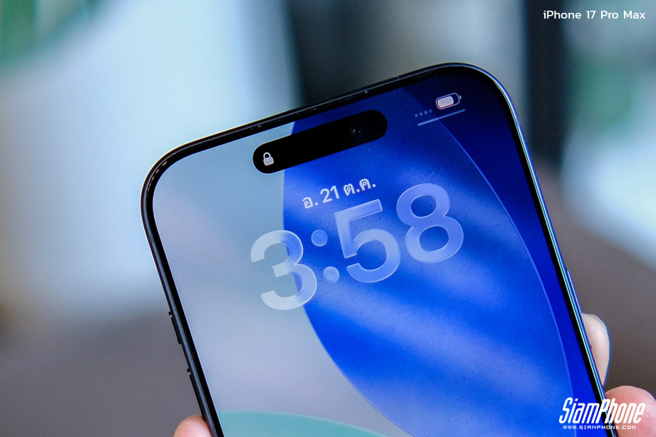 หน้าจอแสดงผลของ iPhone 17 Pro Max ยังคงเอาใจสายชอบอะไรใหญ่ๆ กว้างๆ ด้วยหน้าจอ Super Retina XDR พาแนล OLED กว้าง 6.9 นิ้ว ความละเอียด 2868x1320 พิกเซล เทคโนโลยี ProMotion สูงสุดที่ 120Hz และปรับความสว่างได้สูงสุดที่ 3000nits เรียกว่าใช้ความบันเทิงได้แบบจัดเต็มทั้งดูหนัง ดูซีรี่ย์ หรือแม้แต่เล่นเกม