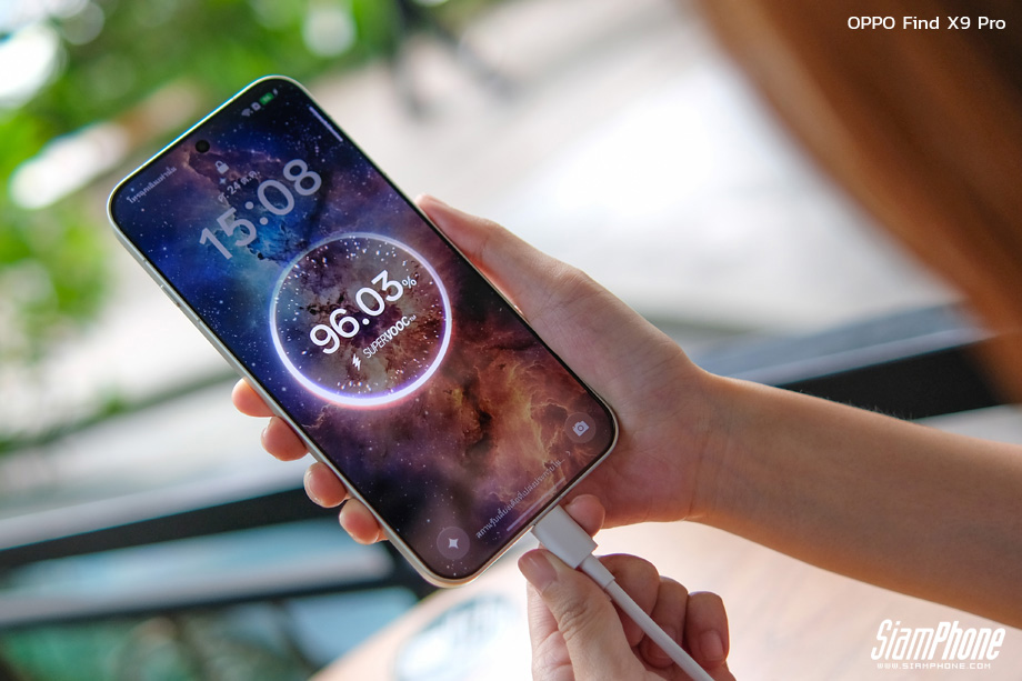 OPPO Find X9 Pro มาพร้อมแบตเตอรี่ขนาดใหญ่ 7,500 mAh ที่ใช้งานได้นานเฉลี่ยสองวันต่อการชาร์จหนึ่งครั้ง ใช้เทคโนโลยีแบตเตอรี่ซิลิคอนคาร์บอนรุ่นที่ 3 ของ OPPO ที่คงความจุได้ 80% หลังใช้งานยาวนานถึง 5 ปี รองรับการชาร์จไว 80W SUPERVOOC และชาร์จไร้สาย 50W AIRVOOC รวมถึงการชาร์จย้อนกลับไร้สาย 10W ครบทุกทางเลือกด้านพลังงาน