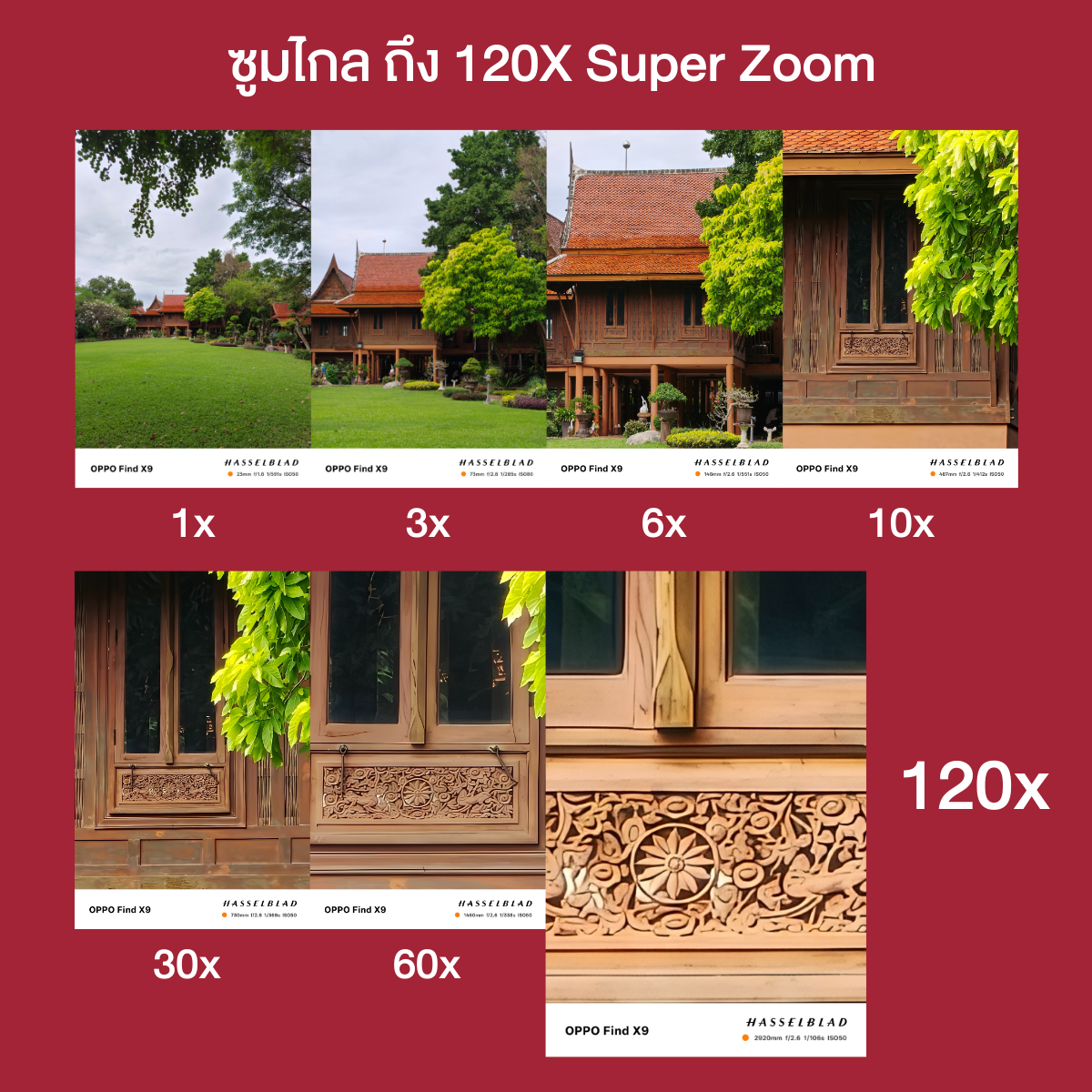 - ความสามารถในการซูม: จากภาพทดสอบการซูมที่ระยะ 1x, 3x, 6x, 10x, 30x, 60x ไปจนถึง 120x ระบบกันสั่นทำงานได้ดีเยี่ยมในระยะซูมไกล ภาพที่ระยะ 120x ยังคงรักษาโครงสร้างของวัตถุได้ชัดเจน ไม่แตกเป็นพิกเซลจนดูไม่รู้เรื่อง ซึ่งถือเป็นจุดเด่นของเซนเซอร์ความละเอียดสูง 200MP