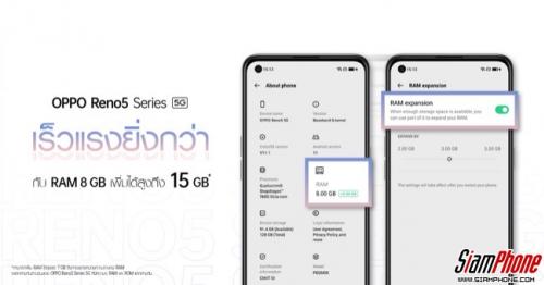 เปิดตัวเทคโนโลยีใหม่ Memory Expansion Technology หรือ RAM Expansion ใน OPPO Reno5 Series 5G โดยจะปล่อยให้อัปเดตผ่านทางการอัปเดตซอฟต์แวร์ ซึ่งผู้ใช้ OPPO Reno5 Series 5... 5.9K - อ่านต่อ
